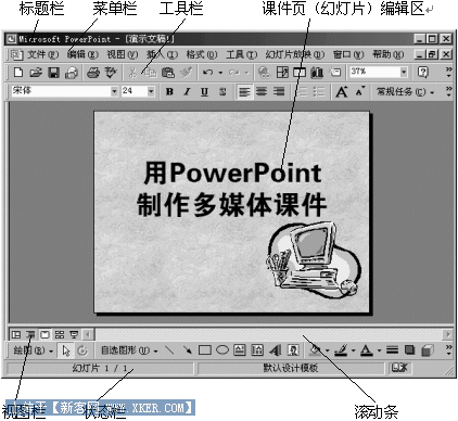 PowerPoint是Microsoft公司Office系列办公组件中的幻灯片制作软件,由于它和其它Office软件一件,容易使用,界面友好,因此在设计制作多媒体课件中,应用也很广泛。