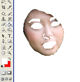 下面我们用它把mm的面部皮肤选出来,点那个钮,选画笔,前景色为黑色,涂你要磨的部分,涂过界的用白色画笔涂回来,来回涂是不是很方便?