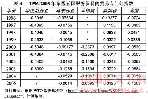 随着东盟五国服务贸易的发展,各国服务贸易的国际竞争力出现了一系列变化。我们采用净出口、显性比较优势和贸易专门化指数,对1996-2005年东盟五国的服务贸易竞争力进行实证分析。