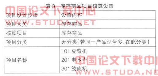 1.1243库存商品(不设置二级科目,但按产品名称进行项目核算,相当于二级科目),库存商品按产品名称设置项目目录进行明细核算,并在一级科目做数量金额核算(见表3)。