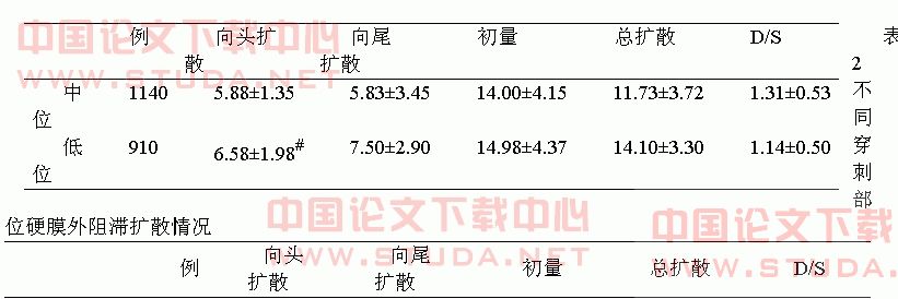 表1   中位与低位穿刺时硬膜外阻滞扩散情况