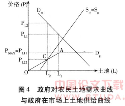 由此可见,由于政府需求者与供给者的双重身份,农民对政府的土地供给曲线与政府对农民需求曲线是一致的。这也就意味着由于上述得出农民对政府供给曲线的原因,政府可以用较低的价格获得土地。