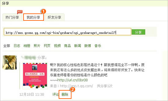 图片 QQ空间中如何删除自己分享的视频?_
