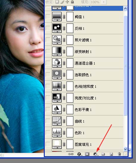 在箭头所指建立调整图层里的所有选项,都同时建立图层蒙版。本人在最初看到这些图标时简直晕死了,但弄懂蒙版后再看这些图标,简直可爱死了,因为它们可以让我们随心所欲的对图片进行调整,下面看个例子: