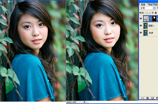 下面再举一个局部应用滤镜的例子,就拿topaz滤镜举例。Topaz滤镜是颇受非议的一个滤镜,网上好多人对“她”嗤之以鼻,我在这里用这个“她”就是表示对它的喜爱,在磨皮时我基本上每次都用,正所谓“没有不好的滤镜,只有用不好滤镜的人”,跑题了…… 用好topaz的关键是不能看出应用痕迹,那我们就用蒙版把不想显示的部分隐藏起来不就行了吗。