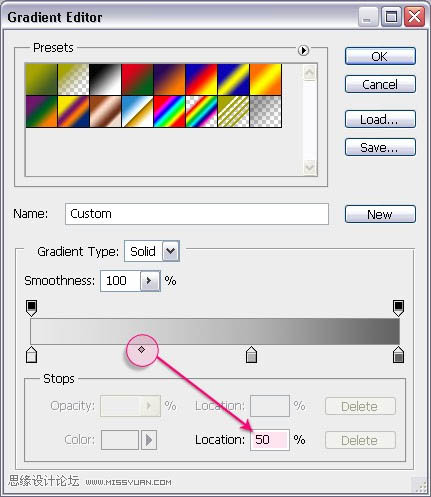 | 3、创建一个三色的渐变(可以通过点击色标滑块添加颜色),左侧颜色为#e9e9e9,右侧为#636363,中间颜色为#b3b3b3,确保中间颜色的位置是60%。 |
