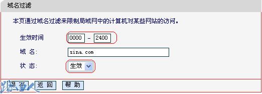 在任何时间00:00-24:00都禁止访问网站sina.com的网站,开启域名过滤功能时,必须要开启防火墙总开关。