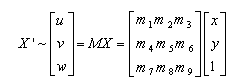 Szeliski和Shum[3]在他们的一系列的文章中提出了用8参数的二维(2D)投影模型求解投影矩阵M。该模型的数学表达如下所示: