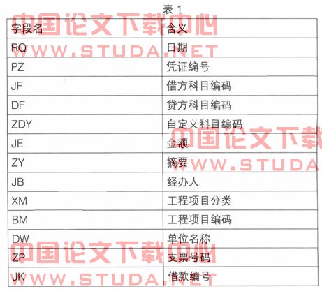 (2)建立序时账。建立序时账就是在开始录入记账凭证前在硬盘的系统指定目录下建立一个数据库空表,用于存贮当年1—12月的所有记账凭证。记账凭证按业务发生的时间顺序存贮于该表中,可以说它是一个记录全部核算基础数据的表,是系统进行自动转账等一系列处理的数据源泉。文件结构的数据项是构成记账凭证的全部要素,如表1所示。
