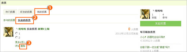 登录您的QQ空间,点击个人中心投票我的投票我发起的查看(即可查看到发起的投票)删除该投票。(如图:)